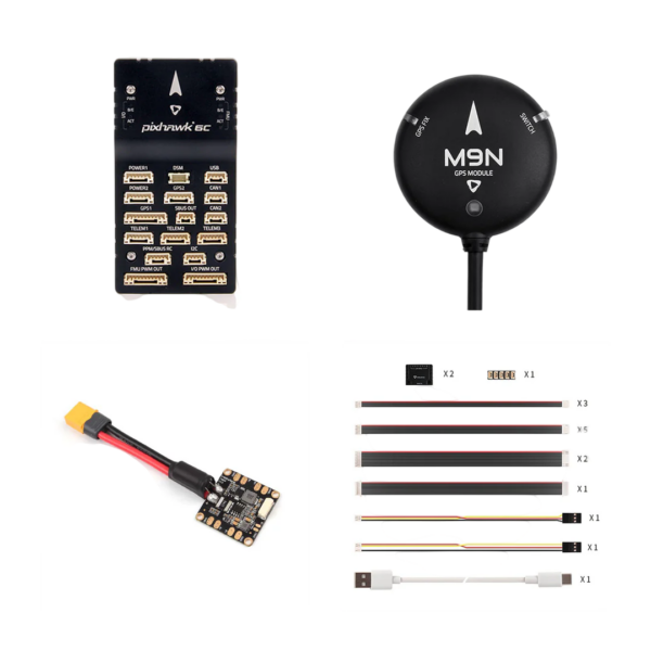 | Полный комплект включает: | Pixhawk 6C Flight Controller Модуль питания: PM02 V3 12S/PM06 14S/PM07 14S GPS: M9N/M10 Набор кабелей |