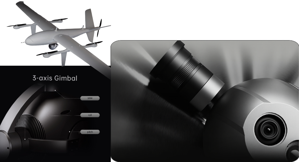 • Стабилизированный 3-осевой карданный подвес A20KT-19 обеспечивает широкий механический диапазон: тангаж/наклон –125°…+115°, крен ±70°, панорамирование ±300° (±360° для IP-версии), контролируемый диапазон –45°…+110° по тангажу и ±290° по повороту. Угол вибрации по всем осям составляет всего ±0,02°, что гарантирует плавное и чёткое видео даже при движении платформы или полёте дрона. Функция «One-key to center» позволяет быстро вернуть подвес в центральное положение, обеспечивая удобство и точность управления.