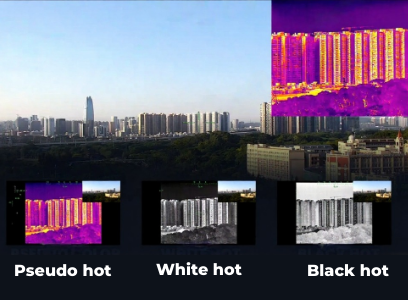 • Цветовые палитры: горячий белый, горячий черный, псевдоцвет