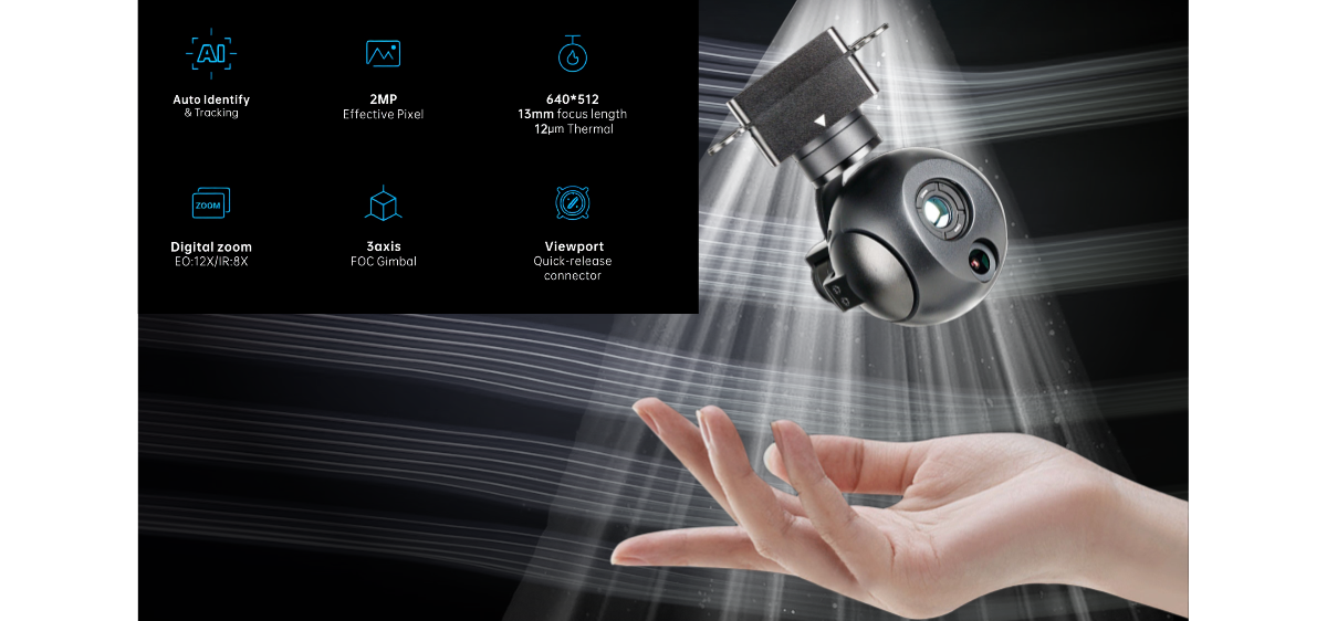• Технология тепловых датчиков A613 обеспечивает чёткое и контрастное изображение, позволяя различать источники тепла и повышая эффективность мониторинга, поисково-спасательных операций и промышленных инспекций. Дополнительно поддерживается режим картинка в картинке, где на экране одновременно отображаются общая сцена и выделенный объект, а OSD-информация включает данные о целевых объектах и параметрах камеры для удобства оператора.