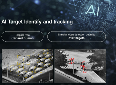 • Интегрированные AI-алгоритмы позволяют одновременно обнаруживать и сопровождать ≥10 целей, включая людей и транспортные средства, с минимальным размером цели 5×5 пикселей. Камера демонстрирует высокий коэффициент обнаружения автомобилей (≥85 %) при низком уровне ложных срабатываний (≤10 %). Эти функции делают AT9-50 эффективным инструментом для автоматизированного мониторинга и интеллектуального слежения за объектами в динамичных сценах.