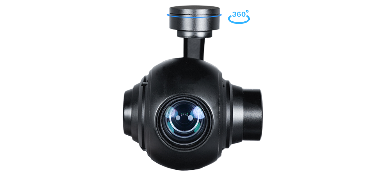 Стабилизация изображения реализована на 3-осевой системе с технологией FOC, обеспечивающей точность компенсации вибраций до ±0.02° по всем осям. Механические углы движения включают тангаж −45°…+90°, крен ±70° и рыскание ±360° (в IP-версии доступно непрерывное вращение). Поддерживается автоматическое центрирование, плавное позиционирование и стабилизация в реальном времени, что критически важно при динамических полётах и сопровождении движущихся целей.