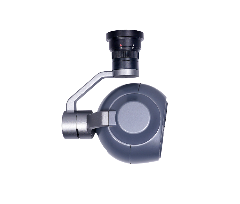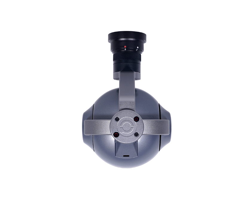 • Система стабилизации реализована на базе высокоточного 3-осевого FOC-подвеса с точностью управления ±0.01° и стабилизацией порядка ±0.02°, что обеспечивает практически полное подавление вибраций и плавное изображение в динамических условиях. Диапазоны движения включают тангаж от −90° до +125°, крен ±40° и непрерывное вращение по рысканию на 360°, предоставляя полный контроль направления наблюдения. Конструкция подвеса использует скрытую внутреннюю проводку, механические ограничители и демпфирующую систему с четырьмя амортизирующими элементами, что повышает надёжность и стабильность передачи данных. Корпус выполнен из лёгких и прочных материалов, а масса устройства в пределах 896–959 г делает его оптимальным для БПЛА среднего класса. Рабочий диапазон температур от −20°C до +60°C обеспечивает стабильную эксплуатацию в сложных климатических условиях и при длительных миссиях.