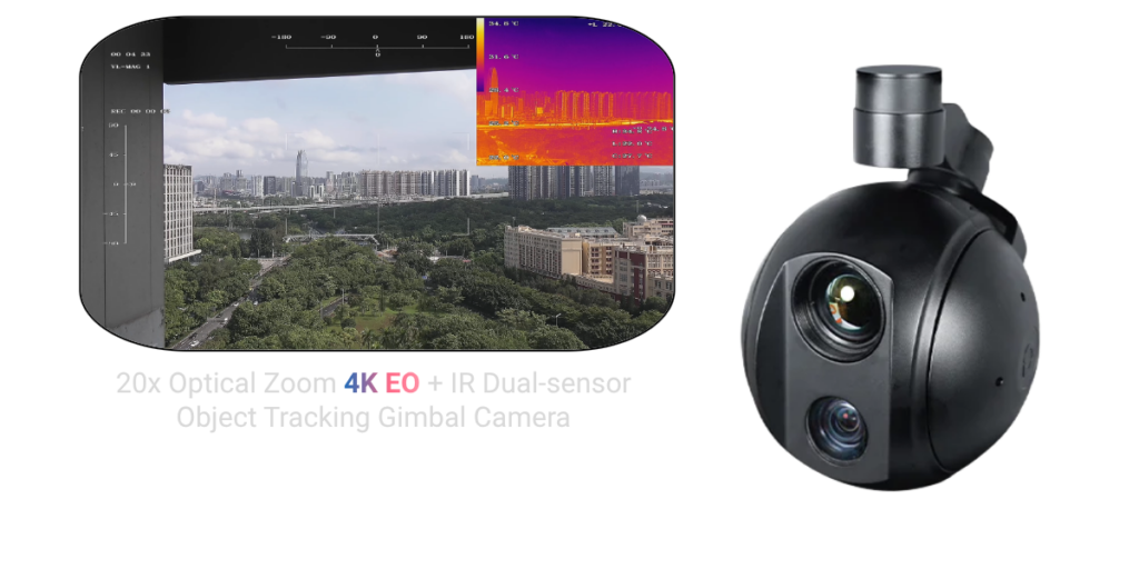Камера Viewpro Q20KTIR Pro — это универсальный EO/IR модуль с 3-осевым стабилизированным подвесом, объединяющий дневную камеру с 20× оптическим зумом и тепловизор HD-уровня. EO-модуль обеспечивает чёткое 4K-изображение и широкий диапазон приближения, а IR-модуль позволяет обнаруживать тепловые цели даже в полной темноте, дыму или плохой видимости. Стабилизация, трекинг объектов и гибкие интерфейсы управления делают Q20KTIR Pro удобной для дронов и систем наблюдения — идеально подходит для мониторинга, охраны, инспекции, патрулирования и поисково-спасательных задач.